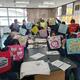 11月18日(火)、創造技術科・染織デザインコース2年生の専門学科講師授業で「蝋染めワークショップ」が行われました。講師は奈良芸術短期大学・染織コースの近藤卓浪先生です。桐工では蝋染めの実習は行わないので、どんな仕上がりになるか、ドキドキでした。結果は…それぞれが考えた色やデザインの鮮やかなハンカチが染め上がりました。遠く奈良からたくさんの染色道具をお持ちいただきご指導くださいました近藤先生に感謝します!