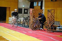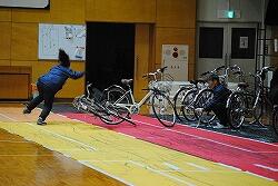 体育館にて、スタントマンによる