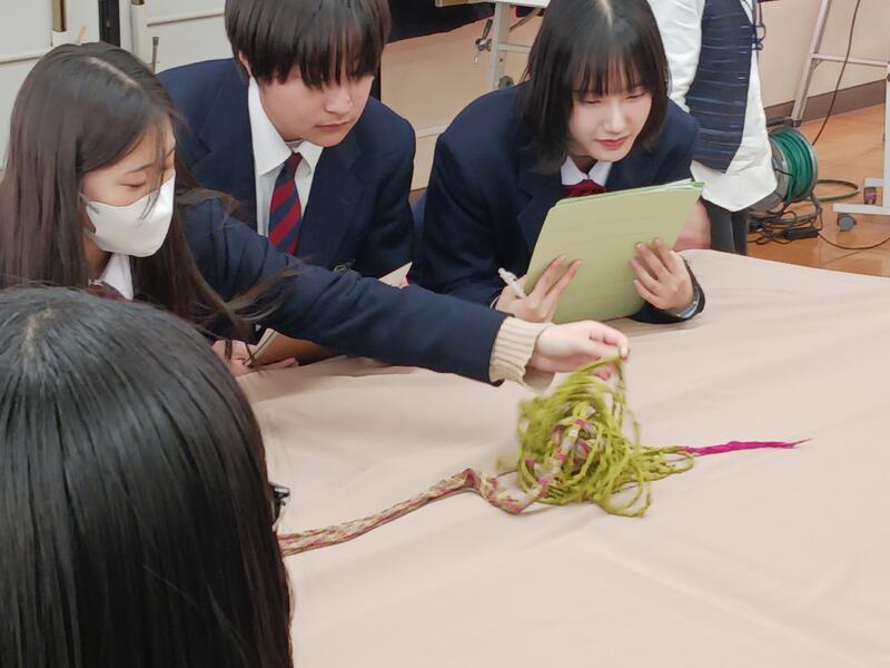 生徒は興味を持ち、繊維の組織をじっくり観察していました。
